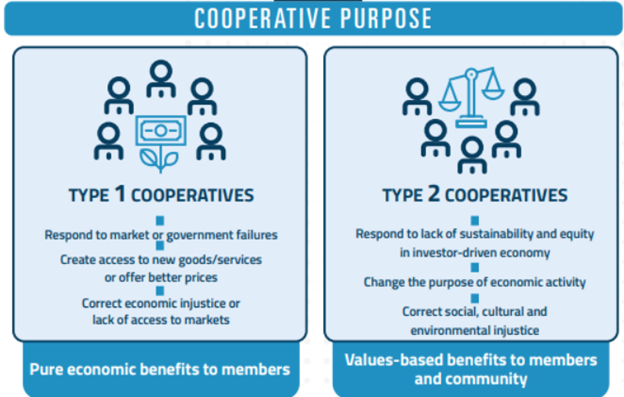 Cooperatives are more adaptable and sustainable than other enterprises, which makes their economic approach an apt metaphor for friendship. The graphic above, co-created by Karen Miner and Sonja Novkovic, highlights two reasons that a co-op, or perhaps a friendship, might exist. Friendships often respond to a specific need, such as seeking companionship when we’re new to a community, or they might enable transformation by co-creating new cultural or emotional experiences.