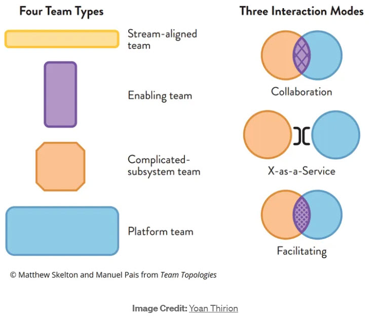 Team Topologies is an approach to designing team-of-teams organizations for fast flow of value, particularly for software development. According to Matthew Skelton and Manuel Pais, team topologies “provides, actionable guide for evolving team design to continuously cope with technology, people, and business changes, covering size, shape, placement, responsibilities, boundaries, and interaction of teams building and running modern software systems.”